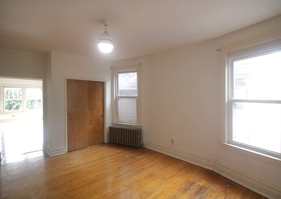 Second story apartment. Single bedroom, with walk-in closet. Spacious living room with sunroom that provides great natural light. Full kitchen. Full bath with tub and ceramic tiled shower. Hardwood floors throughout. Decorative fireplace. Cats and dogs are permitted. Washer and dryer on site.